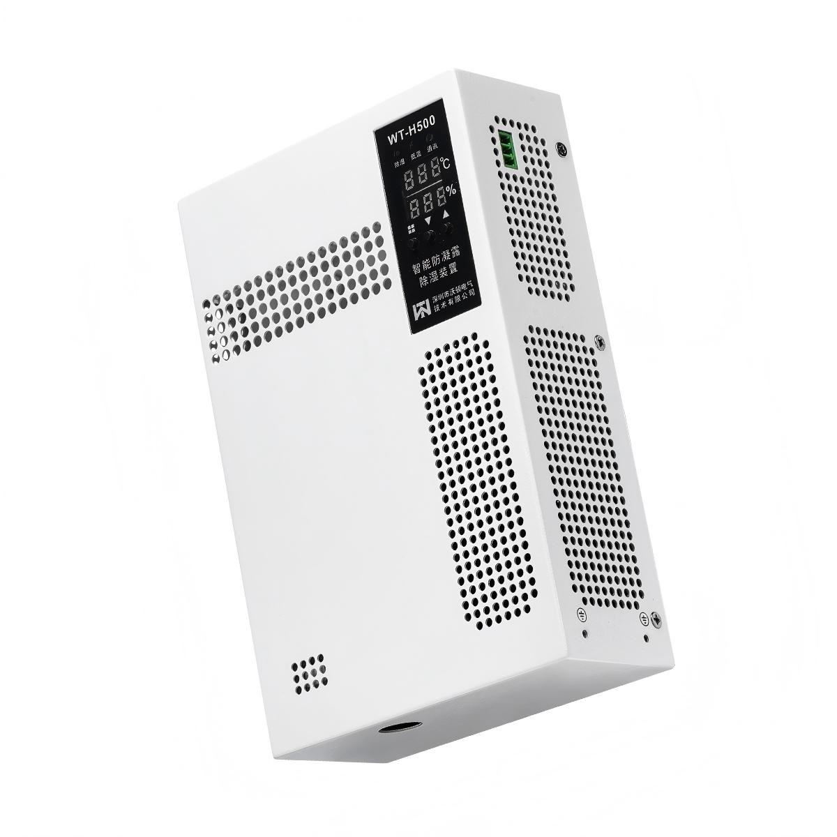 Wt-h500 new intelligent anti condensation cooling and dehumidification device is based on thermoelectric refrigeration to cool the water molecules in the air in power high-voltage switchgear and distribution cabinet below the dew point temperature to achieve the purpose of dehumidification. Compared with the traditional dehumidification technology, it has the characteristics of small volume, high stability, no refrigerant and desiccant, environment-friendly and so on.
